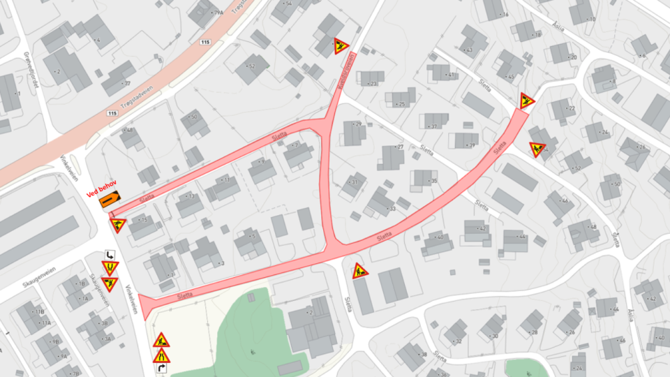 Begrenset framkommelighet i Sletta fra torsdag 9. til fredag 24. oktober Det vil være begrenset framkommelighet mellom kl. 07.00 og 15.00 på grunn av gravearbeid.