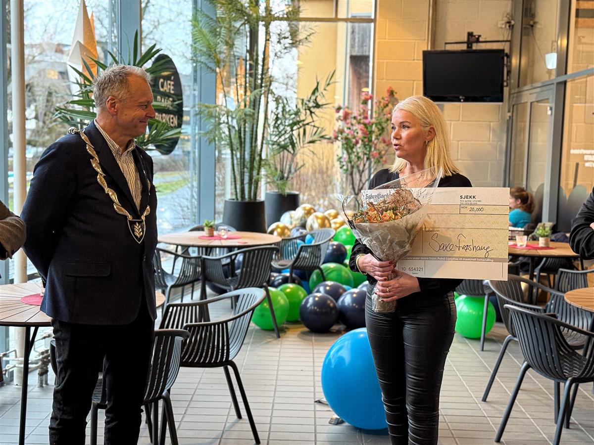 Ordfører Saxe Frøshaug deler ut arkitektur- og byggeskikkprisen for 2025 til Østfoldbadet v/ daglig leder Christine Aannerud.Plan- og bygningsutvalget har valgt følgende jury for prisen: Bjørn Mørk (Ap), Ann-Karin Løken (H) og Per Christian Anfinnsen (H). Jury innstiller en kandidat, og plan- og bygningsutvalget avgjør vinner av prisen.