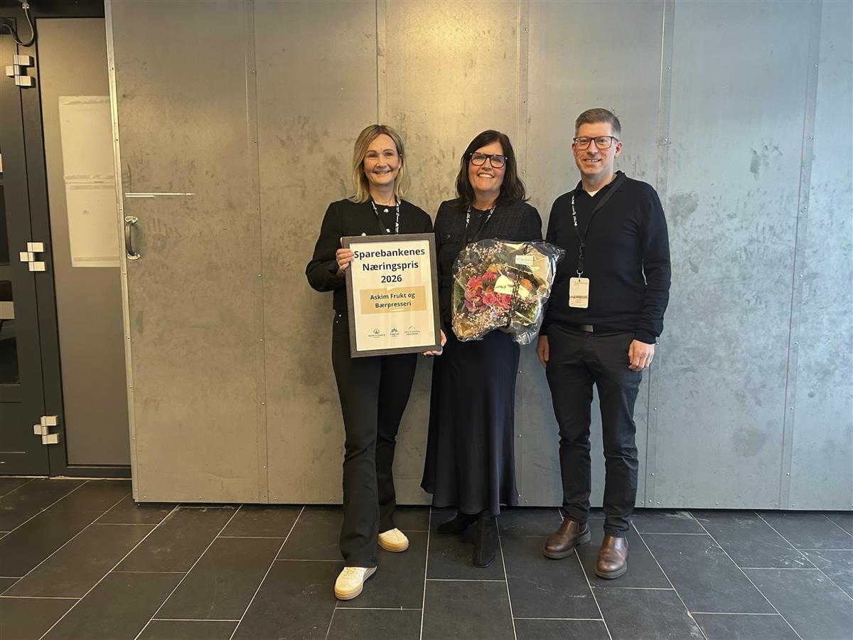 Sparebankenes Næringspris ble tildelt Askim frukt- og bærpresseri. Prisen løfter fram etablerte virksomheter som bidrar til arbeidsplasser, bærekraftig vekst og attraktivitet i regionen.