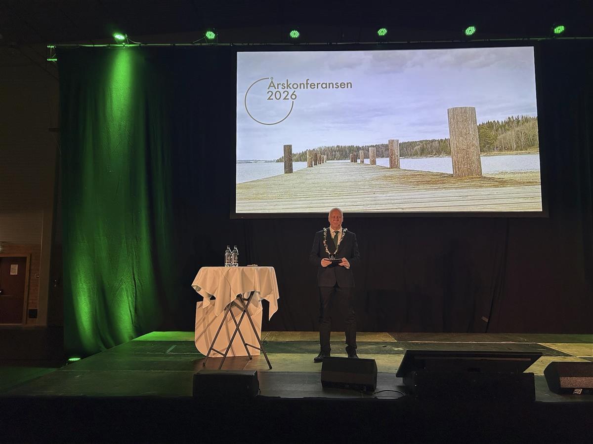 Ordfører Saxe Frøshaug ønsket velkommen til Årskonferansen som fant sted fredag 6. februar i Trøgstadhallen.Veksthusets Gründerpris