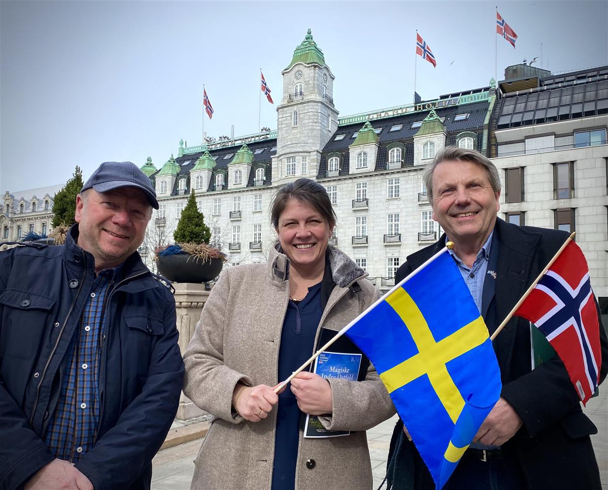 Indre Østfold kommune har ledervervet i Grensekomiteen i 2023. Fra venstre: Alf Johansen (sekretariatsleder), Kathrine Hestø Hansen (varaordfører og leder i Grensekomiteen) og Per Jonsson (nestleder i Grensekomiteen).