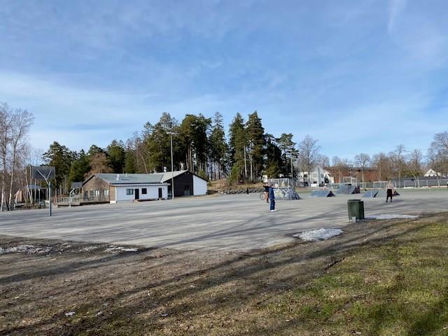 Slik ser området ut per november 2025 -- deler av arenaen er preppet for vinterens skøyteaktiviteter i samarbeid med Askim Beetles HC.