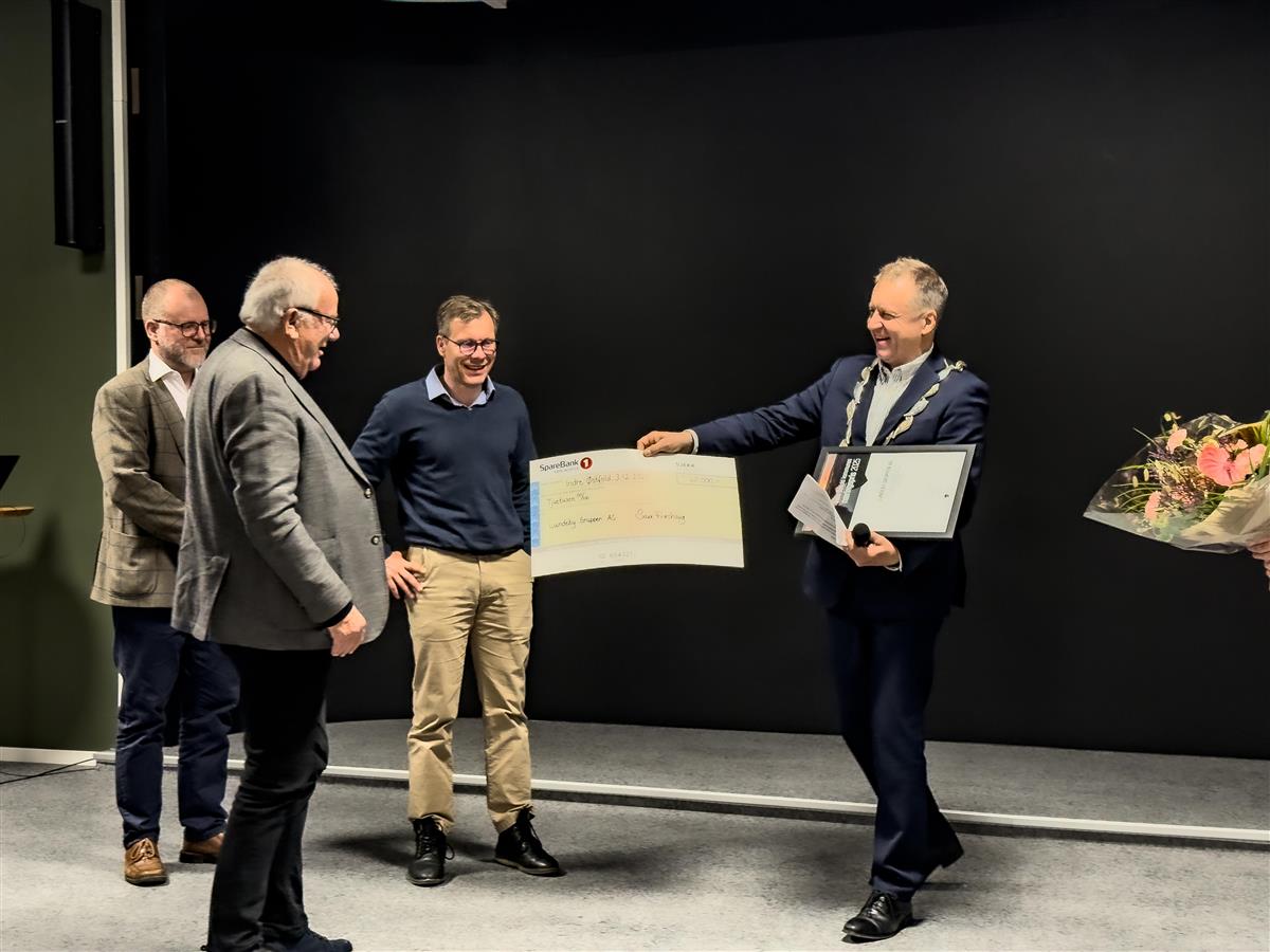 Ordfører Saxe Frøshaug delte ut prisen bestående av blomst, diplom og gavesjekk på 20 000 kroner.