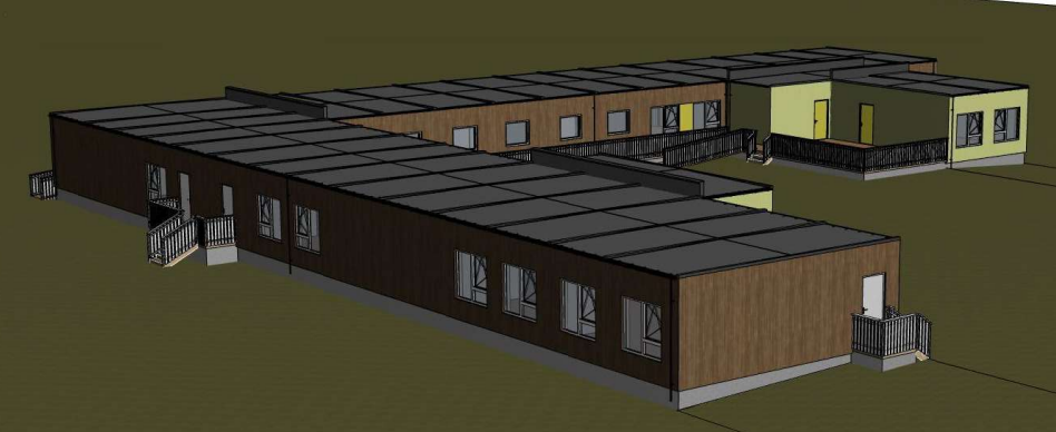 Den nye barnehagen får fire avdelinger istedenfor dagens tre. Det skal også legges til rette for økt deling og enklere samhandling mellom avdelingene, noe vi mener blir positivt for både barna og de ansatte. Bruk av modulbygg gir mulighet for både arealeffektive, kostnadseffektive og fleksible løsninger og vi har gjort flere grep for å skape gode rammer for både barn og voksne. Det gjelder både type kledning på utsiden av bygget, fargevalg og praktiske løsninger.