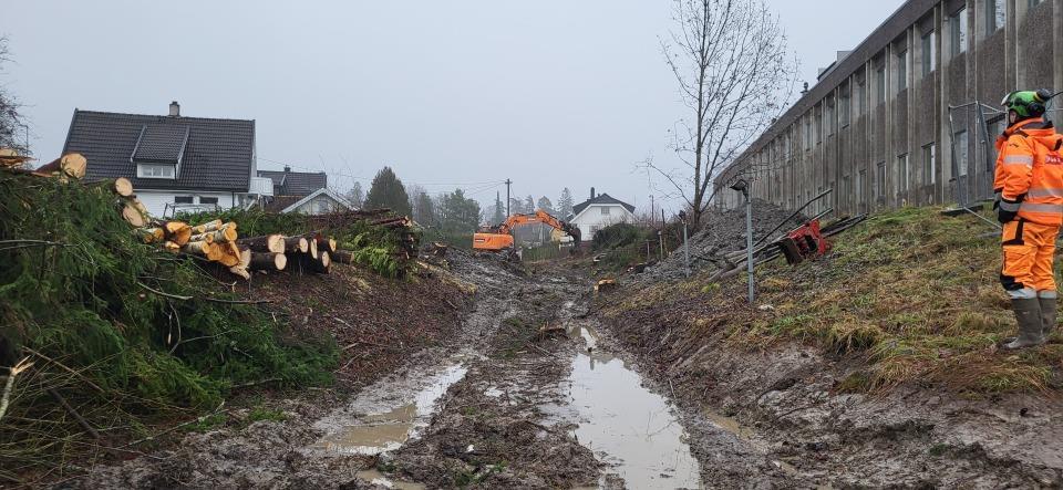 Mellom Hasle og Anfinnsens gate er vi godt i gang med vegetasjonsrydding og klargjøring for anleggsvei før rørarbeidene kan starte.